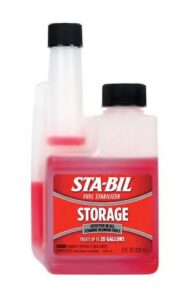 Gas left in your mower or trimmer over the winter can cause buildup and damage the carburetor. You can either let the engine run until the tank is dry, or add a fuel stabilizer like the STA-BIL Storage Ethanol/Gasoline Fuel Stabilizer and run the engine for a few minutes to circulate it.